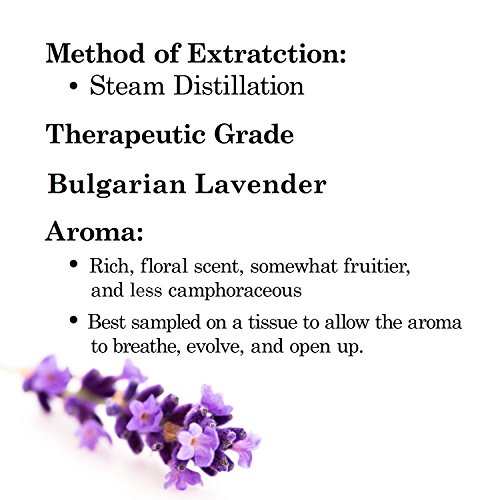 Majestic Pure Lavender Oil; Steam distilled from Lavandula angustifolia (English Lavender) from Bulgaria; 100% pure and natural; therapeutic grade; Not adulterated or modified or diluted; Packaged in the USA