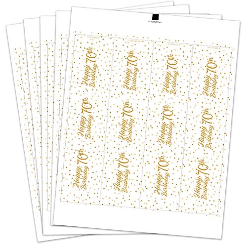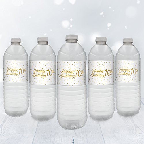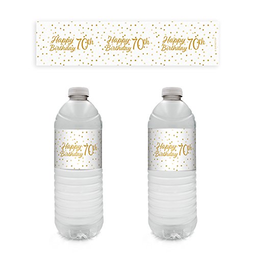 70th Birthday Party Water Bottle Labels - White and Gold (24 Count)