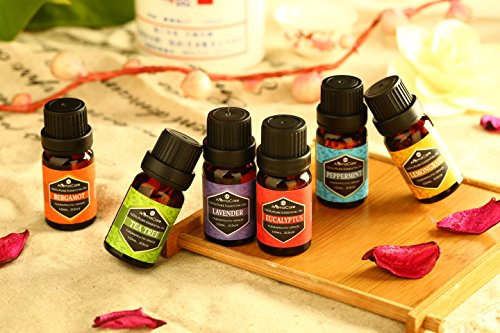 EA AromaCare - Aromatherapy Essential Oils Gift Set, Therapeutic Grade,100% Pure, (Lavender, Peppermint, Lemongrass, TeaTree, Eucalyptus, Bergamot) FREE ebook