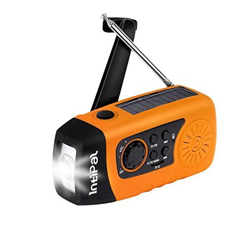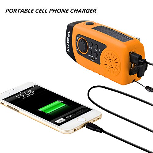 IntiPal 2000mAh, Emergency Solar Hand Crank FM Radio, MP3 Player, Flashlight, Smart Cell Phone Charger w/ USB Cable (Yellow)
