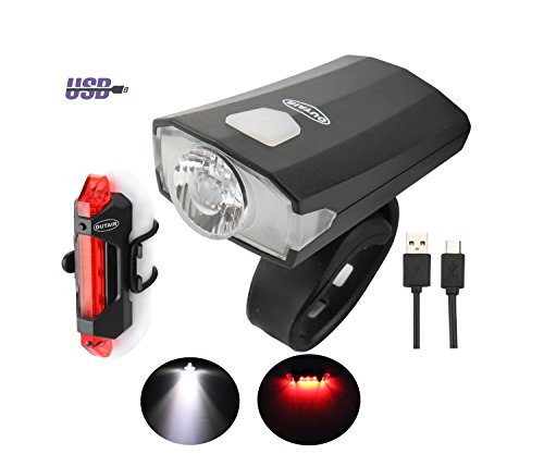 -. Feature : ✔ BRIGHT & RELIABLE: stylish, yet powerful and compact usb rechargeable bike light set. 200 lumen output bike headlight. 5 lighting modes. 3-10 hours battery life. / ✔ USB RECHARGEABLE: Charge up and go! 2-3 hours charging time. Say goodbye to expensive batteries. Whether at day or night, this all-powerful set of LED bicyle lights will keep you seen anywhere, anytime! / ✔ SAFFETY WARNING TAIL LIGHT: Includes our bestselling usb rechargeable bike tail light, with a 20 output lumen, not too brighness,comfortable to eyes,keep safety, at least 4-10 hours battery life, and 4 lighting modes. / ✔ UNIVERSAL FIT: No tools required. Installs in SECONDS! The headlight features a rubber bar mount for hassle-free installation. Quick-release feature for easy on/off.