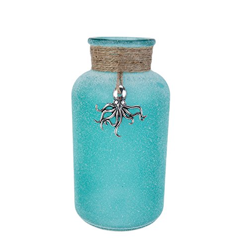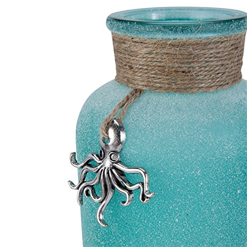6"Glass Decorative Bottle with Pewter Octopus Dangle Nautical Beach Decor