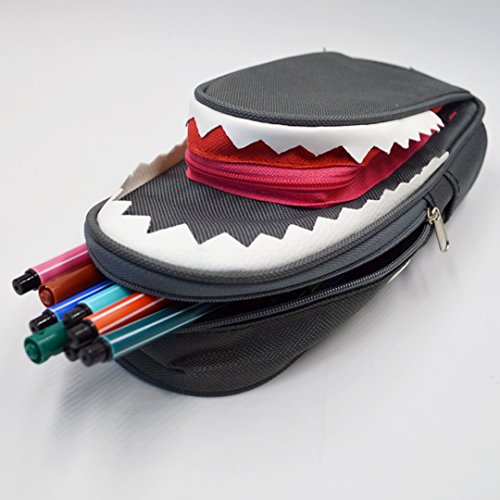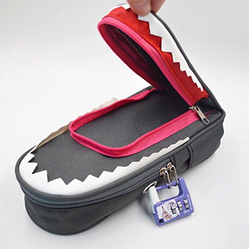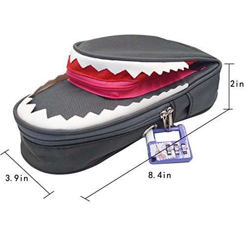 Kennedy Cute Creative Shark Pen Pencil Bag With Lock Large Capacity Students Stationery Storage Zipper Bag Pen Pouch Cosmetic Bag(deep gray)