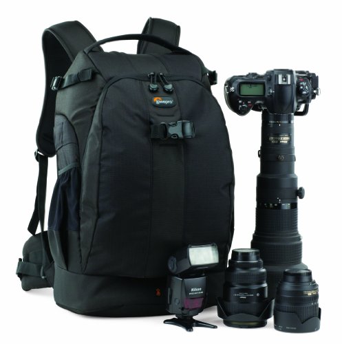 Lowepro expands its award-winning Flipside series with a large-capacity, big-lens outdoor backpack for professional photographers who shoot adventure and sports images: the Flipside 500 AW. The body-side access design provides added security while wearing. The unique, back-entry compartment offers easy access to gear when the pack is rotated to the front. Capacity for a 500mm f/4 lens. The roomy and padded camera compartment provides protective and adjustable divider system for easy customization of gear. The contoured shoulder strap with padded waist belt evenly distributes weight and provides exceptional comfort. The patented, built-in All Weather AW Cover protects gear from rain, dust and sand. The Hideaway Tripod Mount system helps secure a tripod to the outside of the pack for easy access. The zippered, front storage compartment with space for a tablet provides quick access to a tablet, small accessories and personal items. The built-in memory card pockets offer quick access and storage of extra memory. The SlipLock attachment loops increase carrying capacity with compatible cases, pouches and bags. The Flipside 500 AW fits up to a Pro DSLR with grip and 500mm f/4 lens, 1-2 extra camera bodies, 2-4 extra lenses, flash, 3 memory cards, tripod or monopod, tablet, accessories and personal items. Camera models that fit the Flipside 500 AW include: Canon EOS 1Dmk, Canon EOS 5D/5Ds/5D Mk II/7D, Canon EOS 70D, Nikon D4/D4s, Nikon D7100/D7200, and Nikon D800/D810.Feature