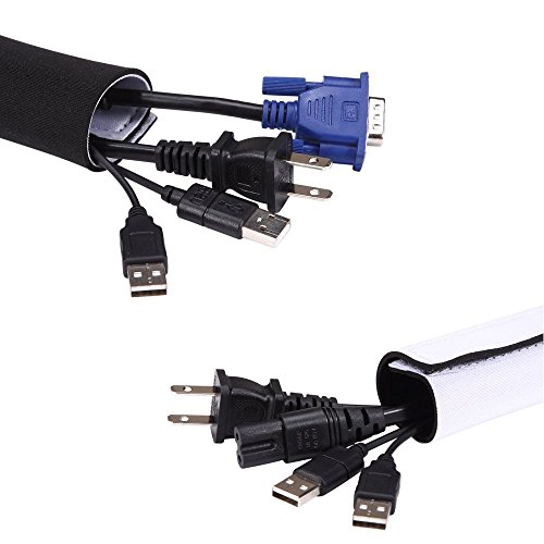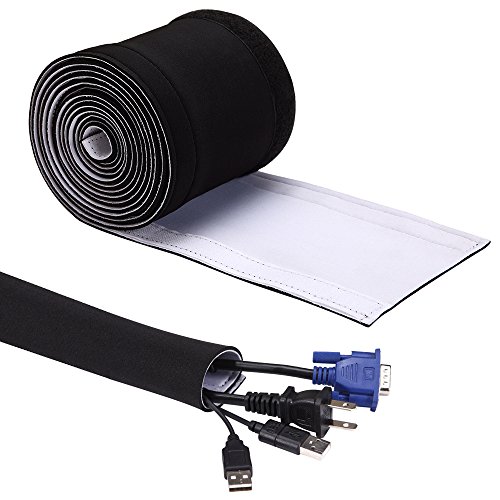 118"×5.3" Neoprene Adjustable Cable Management Sleeves, Cable Cord Wire Cover Hider Sleeves Organizer for PC Computer TV Home Theater Workshop, DIY by Yourself,Black/White Reversible Colors,1 Piece