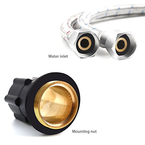 -. Feature : Contemporary and Unique design:graceful curves making the product look like a crescent / Featured with durable ceramic valves ensuring there are no water leaks / Brass construction, ensuring quality and longevity / Beautiful chrome finish, build to resist scratches, corrosion and tarnishing / Complete with Hot & Cold water hoses & accessories