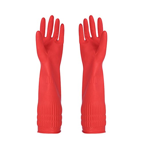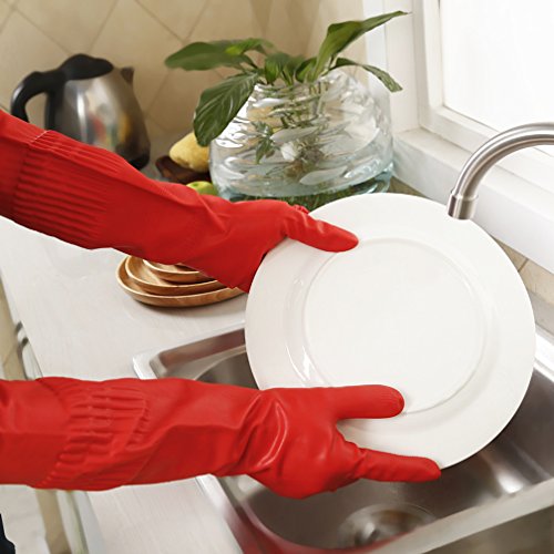 Studio : SYROVIA Publisher : SYROVIA Binding : Health and Beauty Product Description A Essential Requirement in Cleaning: Our hands need to be protected from prolonged contact with water, and from exposure to the harsh chemicals found in cleaning detergents and solutions. Whether you are washing dishes in the sink or cleaning the bathroom, one right pair of household gloves is essential for keeping your hands soft and smooth. Innovations: a) The puncture proof material made the glove thin and pliable. Besides providing extreme comfort, unmatched control and incredible strength, this choice of material means that you can now use latex gloves that are resistant to mold. These rubber gloves are also puncture proof, meaning that you can use them for months without any tears and leaks. b) Skidproof grains were added to the fingertips. These grains make your cleaning gloves the perfect accessory for handling glassware and other fragile objects without fear of dropping and breaking them. c) An extra long arm section which can be folded down to act as improvised cuffs. This design gives ample protection to your hands, wrists and forearms from water that may flow down the gloves when you are working. It also ensures that your sleeves do not get wet whether you are washing the dishes or scrubbing the bathroom. Package Included: One Pair of Gloves