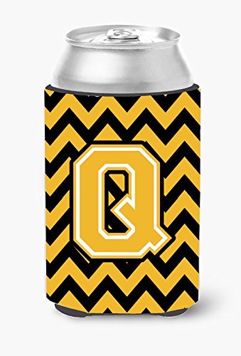 Caroline's Treasures CJ1053-QCC Letter Q Chevron Black and Gold Can or Bottle Hugger, Multicolor