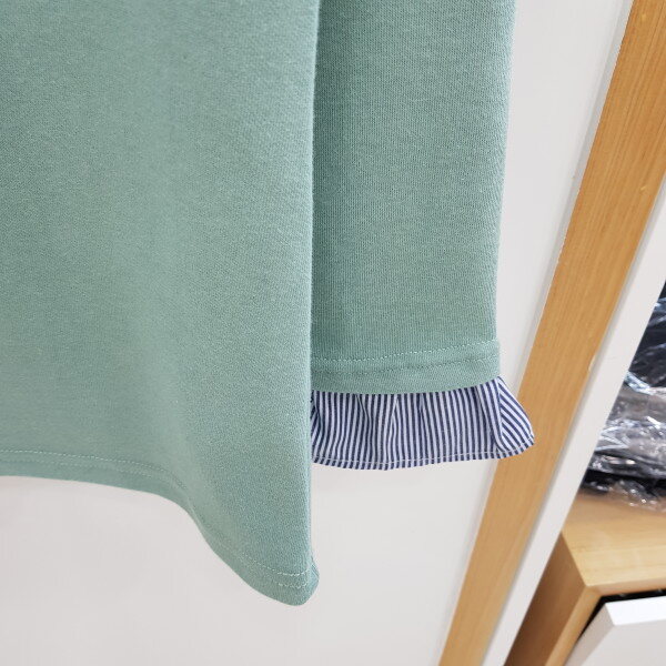 소매프릴장식롱 티셔츠입니다.소매프릴이포인트인 롱티셔츠입니다.