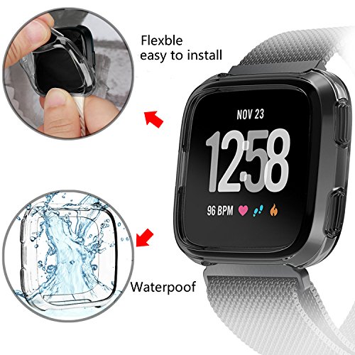 -. Feature : Compatible for Fitbit Versa Smartwatch. Red Protective Case only. / Premium smooth, flexible TPU case. Allows quick and easy installation/removal. / Defined fit stays thin and light weight. Easy access to buttons. Reinforced to safeguard your Versa Watch from drop damage. / Durable build with a raise of 1.2mm to protect screen. Shockproof and shatter-resistant. / Protects your Ionic Watch from dust, dirt, bumps, scratches & damages.