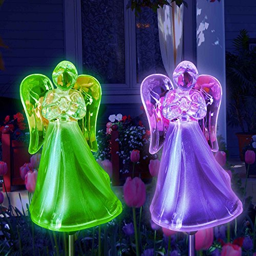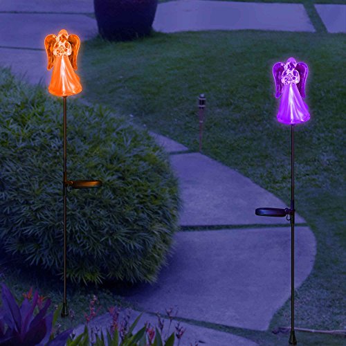 Solar Angel Lights Color Changing Path Decoration Lighting Heavenly Angel Stakes For Outdoor Garden Patio Cemetery Yard Decor by SolarDuke (2 Pack)