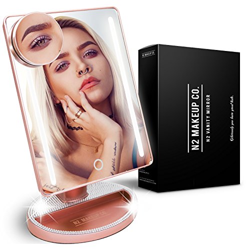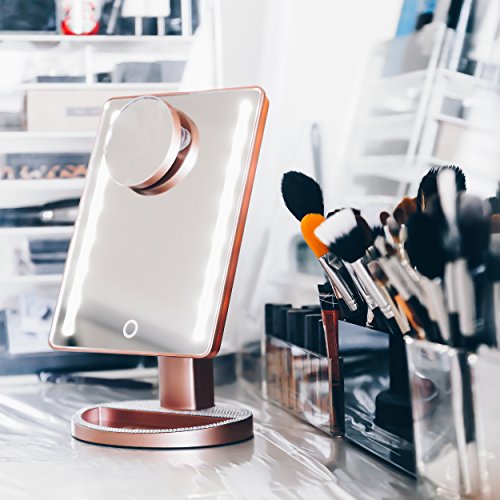 Lighted Makeup Vanity Mirror with LED Lights and 10x Magnification Mirror - 5500k White Daylight Lighting Touchscreen Desktop Travel Pocket Mirror -...