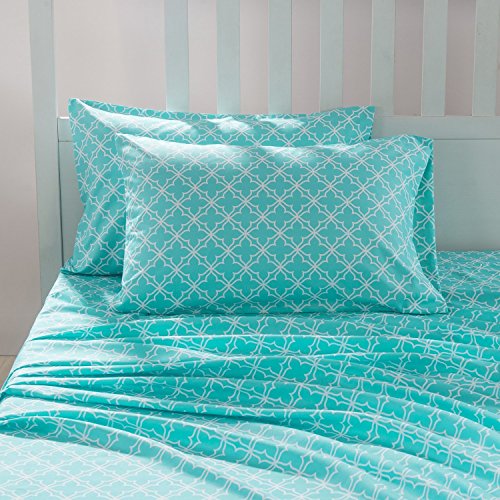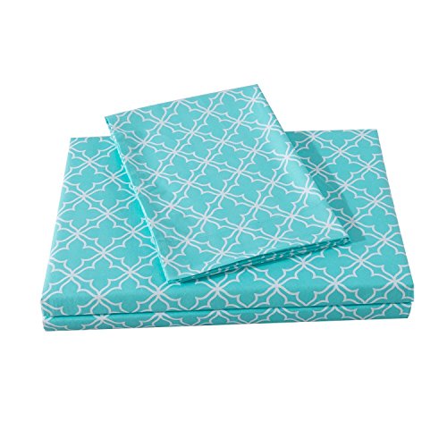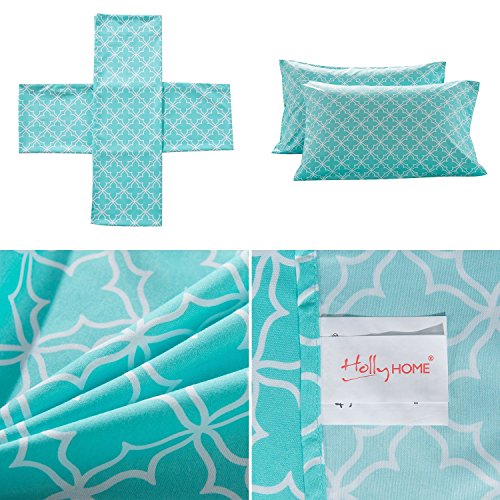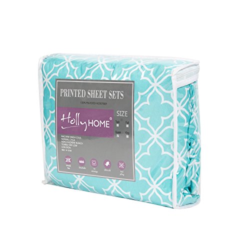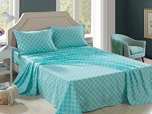 HollyHOME Collection 4 Pieces Ultra Soft Printed Bed Sheet Sets-HM-HYpoallergenic Brushed Microfiber- Wrinkle and Fade Resistant, Quatrefoil Teal, Twin