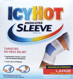 -. Binding : Health and Beauty -. Brand : Icy Hot -. EAN : 0041167083048 -. Feature : Pain Relieving Lotion on a Breathable Flexible Sleeve. / Icy and Hot Therapy for Pain on a flexible, medicated sleeve. / Concentrates medicine at the site of pain. / Icy and Hot Knee and Ankle Sleeve temporarily relieve minor pain associated with arthritis. -. IsAdultProduct : 0 -. Label : Icy Hot -. Manufacturer : Icy Hot -. Model : 08304 -. MPN : 396761 -. NumberOfItems : 1 -. PackageQuantity : 1 -. PartNumber : 396761 -. ProductGroup : Health and Beauty -. ProductTypeName : HEALTH_PERSONAL_CARE -. Publisher : Icy Hot -. Studio : Icy Hot -. Title : ICY HOT SLEEVE LARGE 12"-24" 3 -. UPC : 041167083048