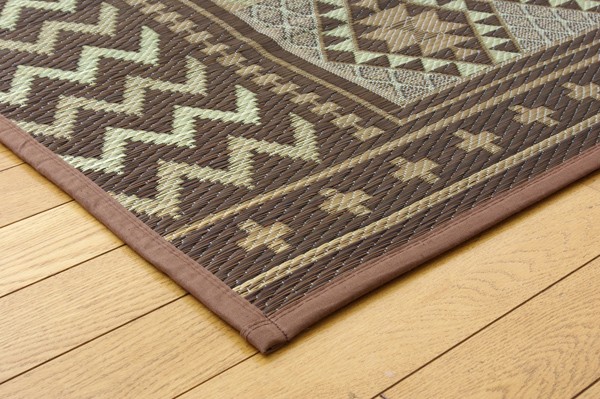 純国産/日本製 袋三重織 い草ラグカーペット 『Fアンカラ』 ブラウン 約191×191cm(裏:ウレタン)