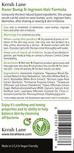 Kerah Lane Organic Razor Bump & Ingrown Hair Formula 8 Oz for Women & Men: Best Treatment Serum for Ingrown Hairs, Acne, Razor Bumps, Razor Burn: Use...