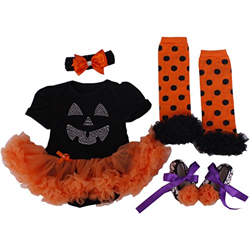 -. Feature : Adorable baby pumpkin Dress with with orange Halloween layered bottom / Baby Girls Pumpkin Tutu Dress , Baby Halloween Costumes Outfit / Fancy Halloween color design style for your little baby! / Set Include: 1pc Rompers, 1pc Headband, 1 pair Shoes, 1 pair Warm Tights / Adorable Boutiques! Baby Halloween costume, dress up, dressup, party, taking photoes for Infant, Toddler, Newborn,Baby