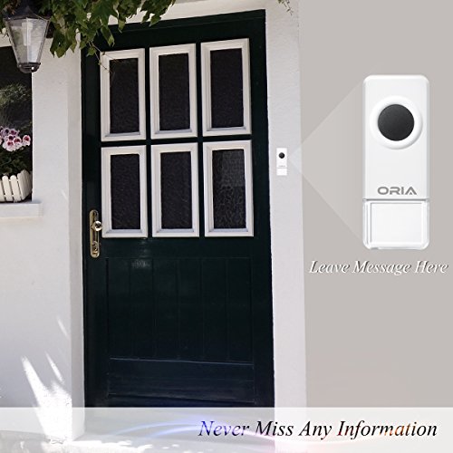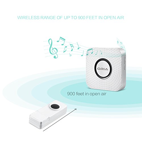 -. Title : Oria Wireless Doorbell Chime, Easy Plug-in Doorbell Operating over 900 feet with 52 Chimes, CD Quality Sound and LED Flash - No Batteries Required