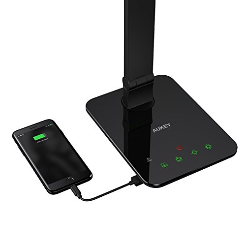 AUKEY LED Desk Lamp, Table Lamp with Extra-Large Panel, USB Charging Port, Dimmable Brightness Adjustment, Touch Sensor and Sleep Mode