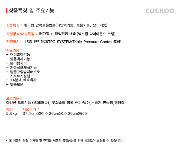 [CUCKOO] IH Rice Cooker For 6 people (CRP-HPF0660SR) / Electric cooker / pressure cooker / 6 people / Kitchenware / Popular Products in Korea / made in South Korea