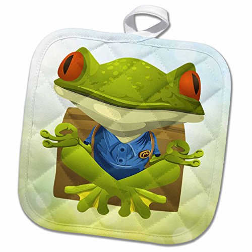 3D Rose Print of Adorable Green Frog on Spring Background Pot Holder, 8 x 8"