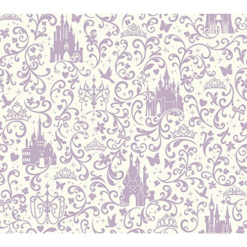 York Wallcoverings DS7613 Walt Disney Kids II Small Scroll with Castles Wallpaper, Purple/White
