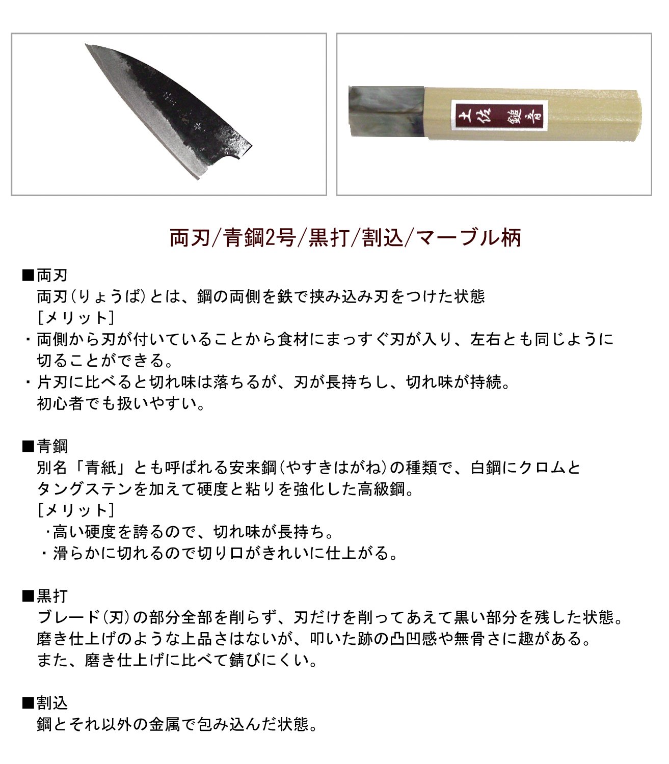 ● Blue Steel No. 2 of Yasugi Steel (Yasugi Glass) which is a high-grade steel, it is excellent in sharpness, it is hard to be chipped