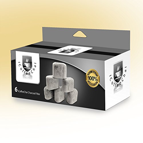 I COFFEECHAI KEURIG WATER FILTER REPLACEMENT, CHARCOAL CARTRIDGES FOR KEURIG 2.0 AND ALL COFFEE MACHINES 6 PACK FULL ONE YEAR SUPPLY. COMPATIBLE WITH 2.0 KEURIG BREWERS AND OTHER COFFEE MACHINE.