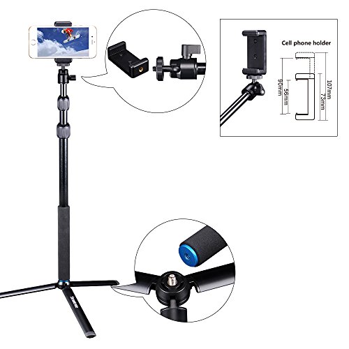 Smatree SmaPole DC Telescoping Selfie Stick with Tripod Stand for GoPro Hero 5/4/3+/3/2/1/Session Cameras, Ricoh Theta S, M15 Cameras, Compact Cameras and Cell Phones