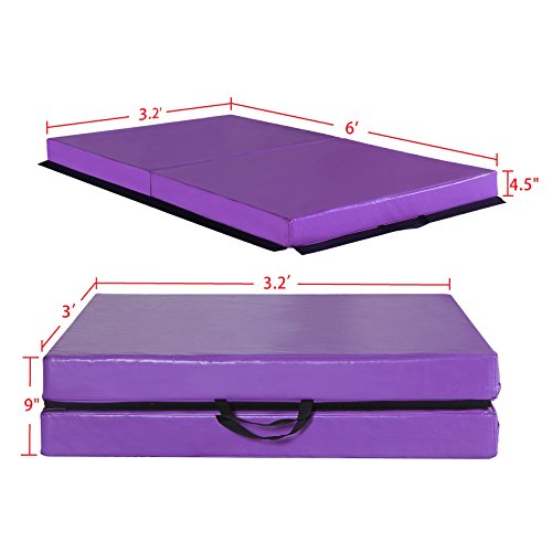 Specification: *Color: Purple *Overall Size: 6' x 3.2' x 4.5"(2 panels) *Folding Size: 3' x 3.2' x 9" *Panel Size: 3' x 3.2' x 4.5" *Item Weight: 13 lbs *4 sided Velcro Strips on the all sides of the mat