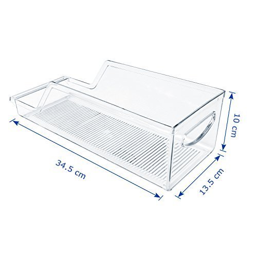 【Large Capacity】Great for organizing milk, fruits, vegetables, jam, meats, cheeses and so on. It can holds up to 9 cans soda. Size: length 13.58 inch, width: 5.31 inch, height: 3.93 inch.