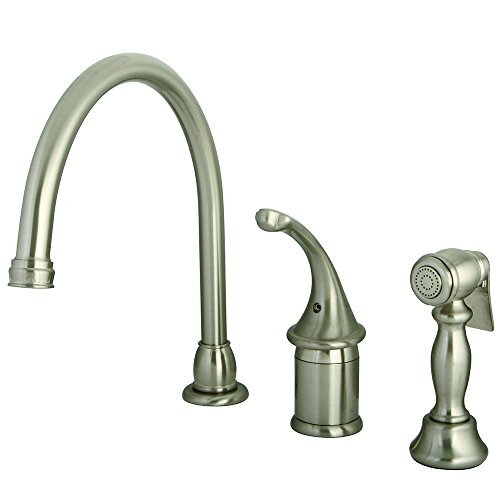 Kingston Brass KB3818GLBS Georgian Kitchen Faucet with Brass Sprayer, 8-3/4-Inch, Satin Nickel