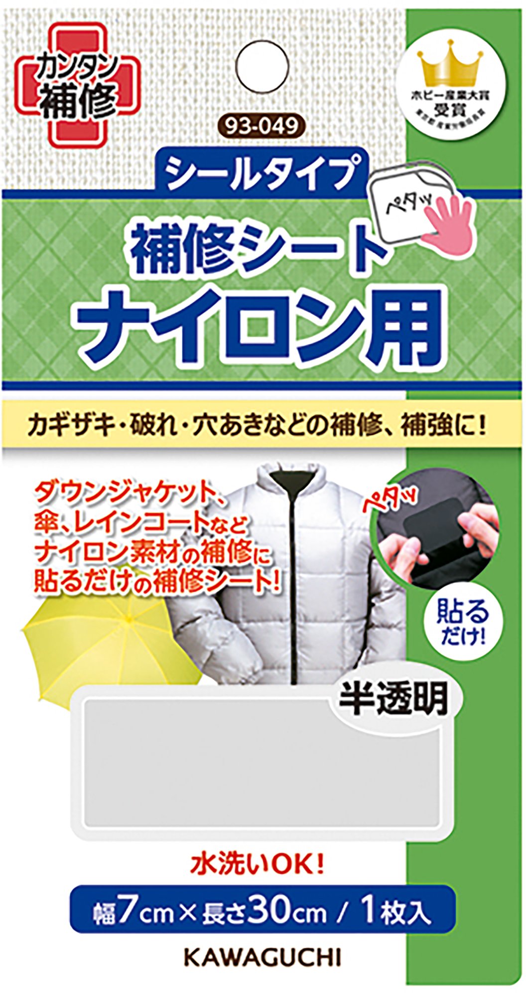 It is a seat that can be repaired simply by sticking it to a torn place such as down jacket, umbrella, raincoat and so on.