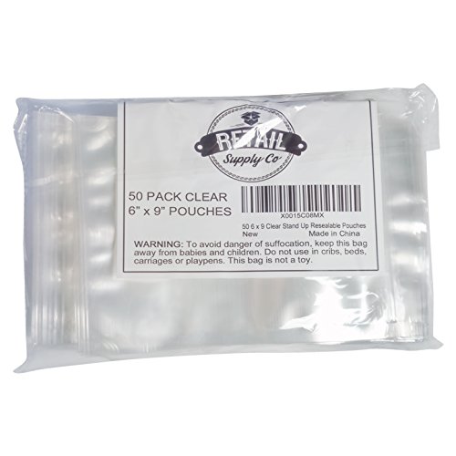50 pack 6" x 9" Clear Stand Up Pouches - Gusseted, Heat Sealable with Resealable Zipper
