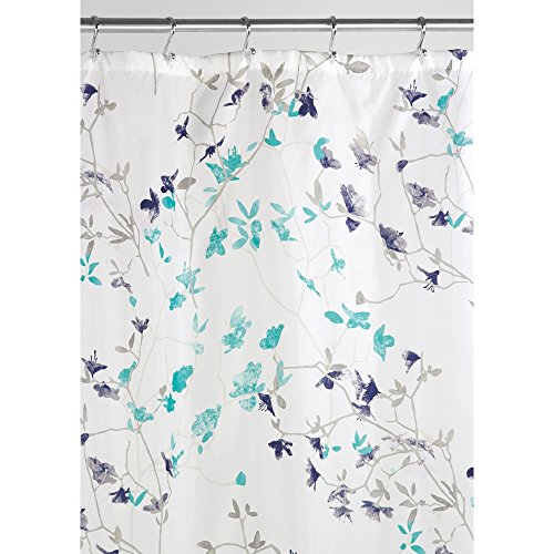 -. Title : InterDesign 60720EU Twiggy Geblümter Duschvorhang aus Gewebe, Stoff, türkis/marineblau, 182.88 x 182.88 x 29.3 cm