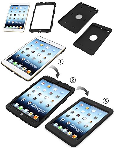 Vogue Shop Combo Cover for iPad Mini Case,3in1 Hybrid Hard PC Soft Silicone High Impact Defender for iPad Mini 1 2 3 Cases(Black)