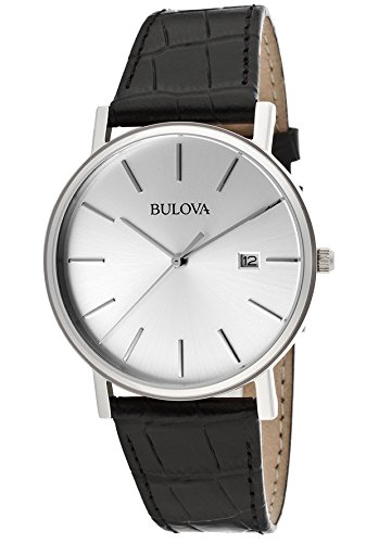 -. Title : Bulova Men's Silver Dial Black Genuine Leather