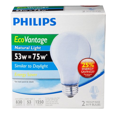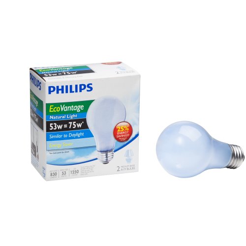 Philips 226969 53-Watt A19 Halogen Light Bulb, Natural Light, Dimmable, 2-Pack
