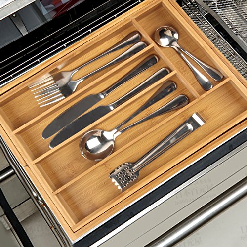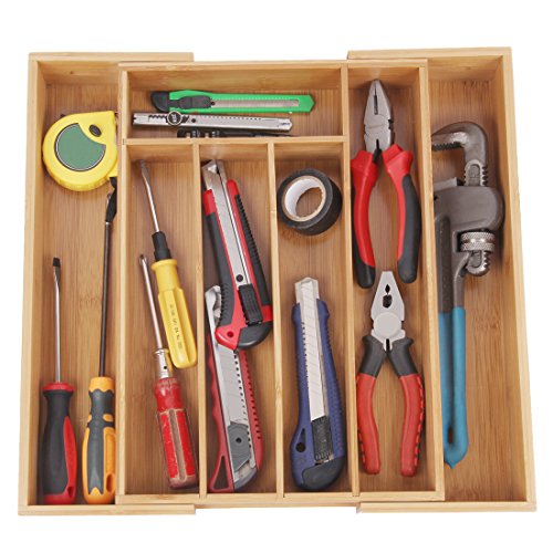 Studio : Artmeer Publisher : Artmeer Product Description The contemporary style of Artmeer Bamboo Expandable Cutlery Tray will fit well with any kitchen,dresser, office, tools decor,The utenisl tray provides 7compartments,The tray fits most standard sized kitchen and pantry drawers. Use this cutlery tray to ensure that items are stored neatly and elegantly where they belong.