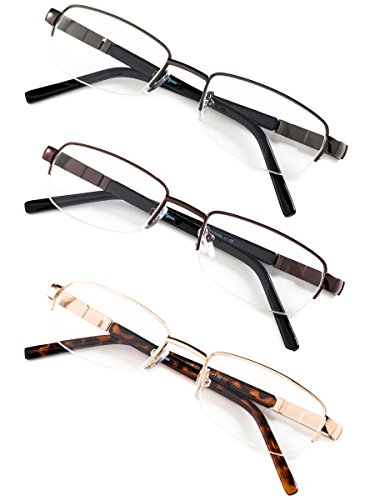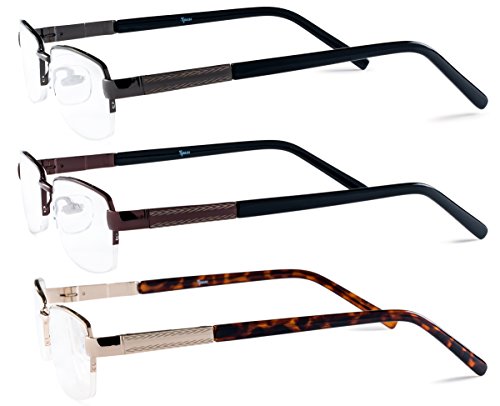 Specs Mens Half Rimmed Reading Glasses, Value Pack, All Magnification Strengths