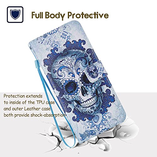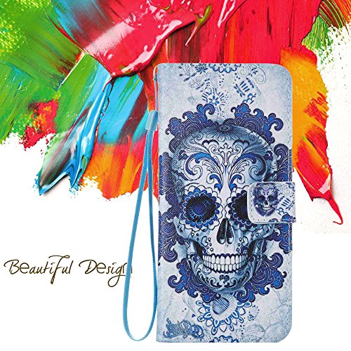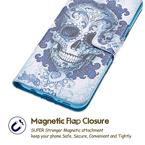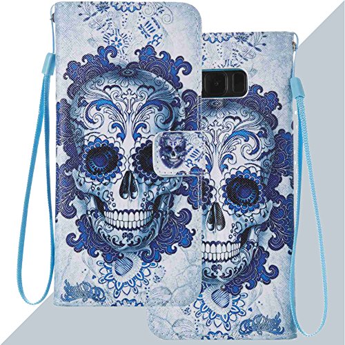 Leather Wallet case for Samsung Galaxy S8, Anti Scratch Flip Cover with Card Holder Embedded Detachable Durable Magnetic Soft Back Kickstand case for Galaxy S8 (Blue Skull)