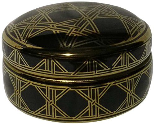 Benzara Ceramic Covered Square Design Jar Decorative, Black/Gold