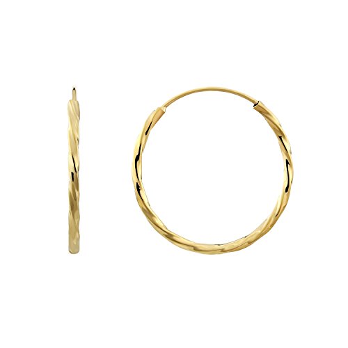An easy, everyday style at affordable price the American goldsmiths have created these polished 14k yellow gold round hoops that have all the appeal of a classic hoop