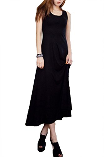 -. Title : Smileshine レディース ワンピース 夏 マキシ丈ワンピース ボヘミアン ノースリーブ シフォンドレス セクシー ドット柄 水玉 ロング丈 リゾート 結婚式 パーティ 二次会 に ! / 大人 レディース ファッション (ブラック)