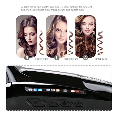 Suitable for all hair lengths and types. 3 timer settings for different curl effects like looser curls, medium curls and tighter curls.