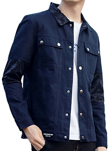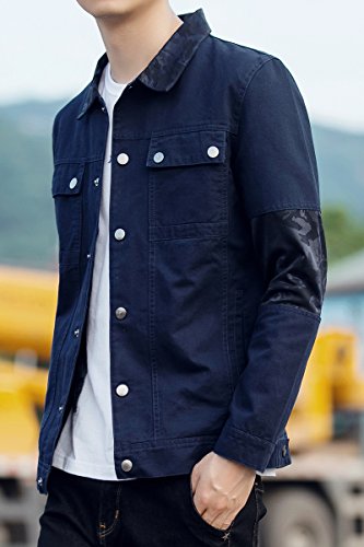 -. Title : Faston ジャケット メンズ 韓国風 長袖 無地 春 秋 カジュアル スリム 綿 コート 4色 JK20 (XL, ネイビー)