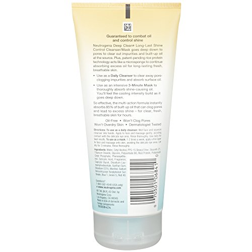 -. Binding : Health and Beauty -. Brand : Neutrogena -. EAN : 0070501068410 -. Feature : 6 ounce each / deep clean long last shine control cleanser mask by Neutrogena for unisex 6 oz Cleanser / Deep clean long last shine control cleanser mask by Neutrogena for men / Dermatologist Tested / Shinefree for hours, with rice protein -. Label : Johnson & Johnson SLC -. Manufacturer : Johnson & Johnson SLC -. NumberOfItems : 1 -. PackageQuantity : 1 -. ProductGroup : Pantry -. ProductTypeName : BEAUTY -. Publisher : Johnson & Johnson SLC -. ReleaseDate : 2015-04-30 -. Studio : Johnson & Johnson SLC -. Title : Neutrogena Deep Clean Long-Last Shine Control Cleanser/Mask, 6 Fluid Ounce -. UPC : 070501068410