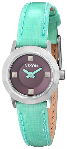 -. Binding : Watch -. Brand : NIXON -. Department : womens -. Feature : Round watch featuring minimalist dial with four pyramid-studded markers and logo at 12 o'clock / 20 mm stainless steel case with mineral dial window / Japanese quartz movement with analog display / Leather band with buckle closure / Water resistant to 50 m (165 ft) -. Label : Nixon -. Manufacturer : Nixon -. Model : NIXON-A338-P -. MPN : NIXON-A338-P -. PartNumber : NIXON-A338-P -. ProductGroup : Watch -. ProductTypeName : WATCH -. Publisher : Nixon -. Studio : Nixon -. Title : Nixon Women's Mini B Stainless Steel Watch with Genuine Leather Band