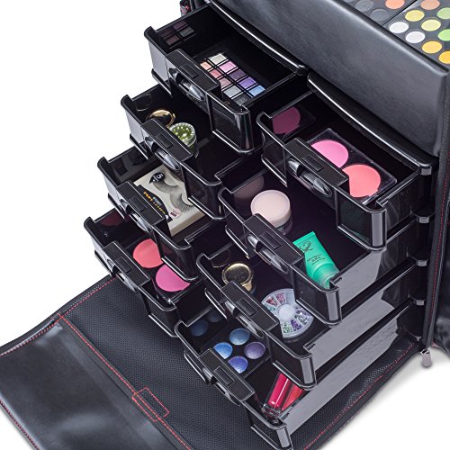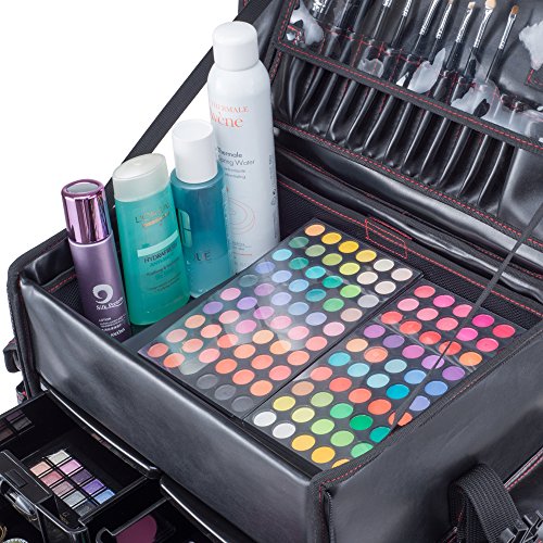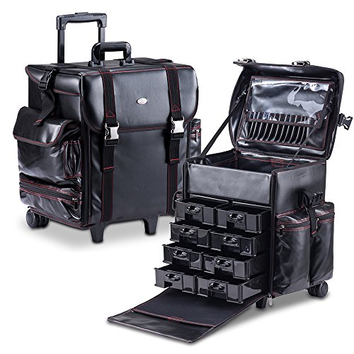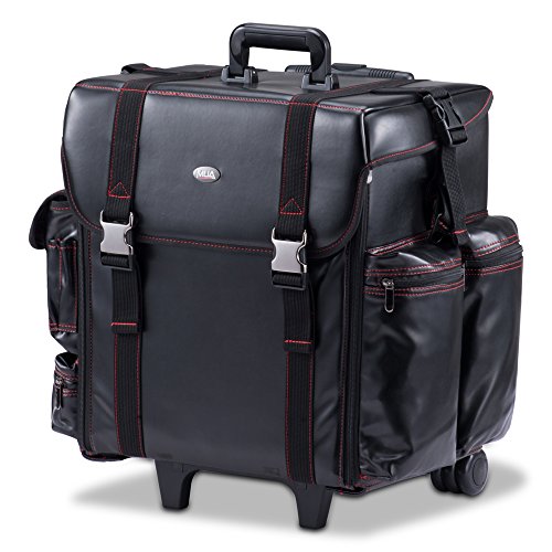 - EASY-TO-CLEAN, DURABLE, TOP QUALITY LEATHER-LIKE MATERIAL - This versatile Professional Rolling Makeup Case was designed with the Professional Makeup Artist in mind. Constructed of superior quality materials, this is a must have for any cosmetologist, beautician, or makeup artist. Includes a retractable telescopic trolley and in-line skate wheels for smooth transportation.