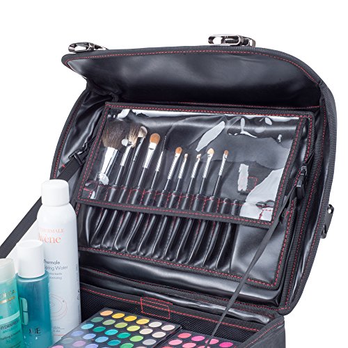 - NOW INCLUDES 13 PIECE PORTABLE MAKEUP BRUSH HOLDER - As an added bonus, this Beauty Trolley comes equipped with a handy foldable cosmetic brush folder, which sticks right onto the upper portion of the case.